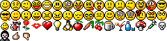Смайлики хранятся в файле smiles.png, его размер не фиксирован. Смайлы нумеруются слева направо, построчно, начиная от верхнего левого угла. Максимальное количество - 256 (16х16). Файл smiles.txt содержит их описания. Каждый смайлик описывается строчкой, которая может содержать множество его символьных эквивалентов, по которым он будет распознаваться. Разделитель между эквивалентами - TAB. Количество строк должно быть равно количеству смайликов в файле smiles.png. При выборе из окна смайликов (команда Add smile в меню формы набора сообщения) берётся первое значение в строке описания.